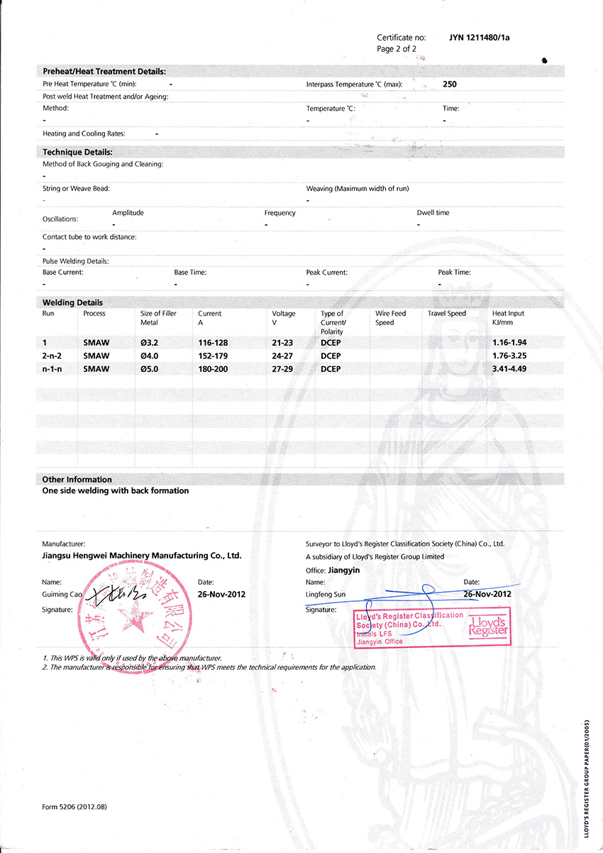 GL焊接工艺评定证书