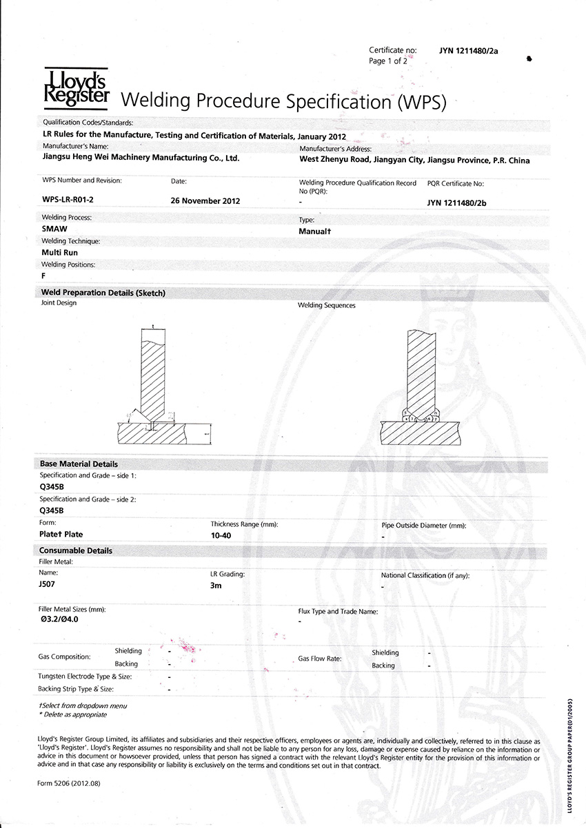LR焊接工艺评定证书